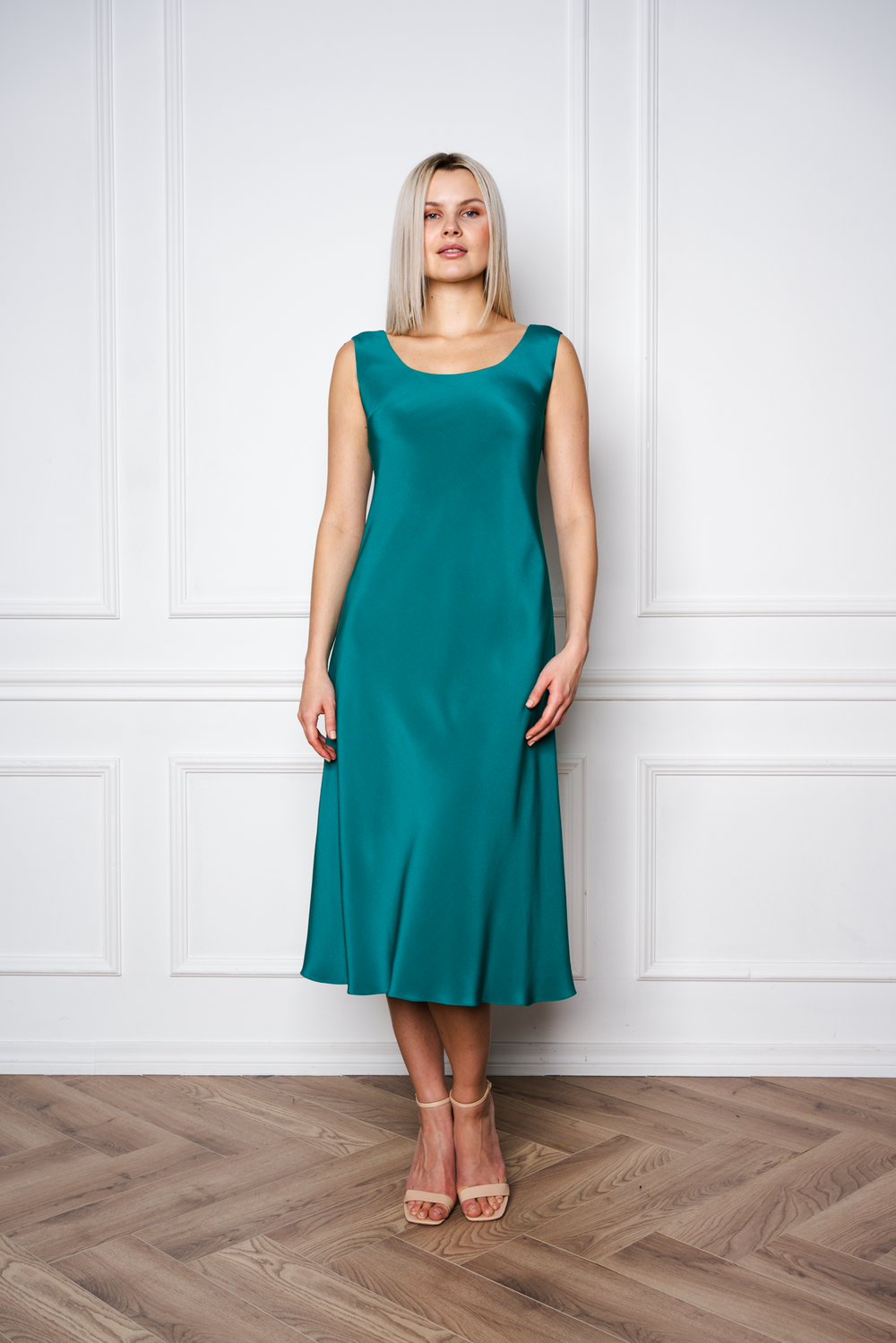 Discover a timeless romantic look in our newest dress for this summer made of Cady couture silk! This charming figure-hugging slip dress falls elegantly below the knee and is cut on the bias to give you that extra stretch to move and feel comfortable in. The dress has wide shoulder straps and is fully lined with silk to smoothen out all your curves and make you feel more confident than ever! Wear this with your favorite heels to a sunset dinner for the most magical memories or throw on your denim jacket and trainers - no doubt, all eyes will be on you while you’re walking down the street.