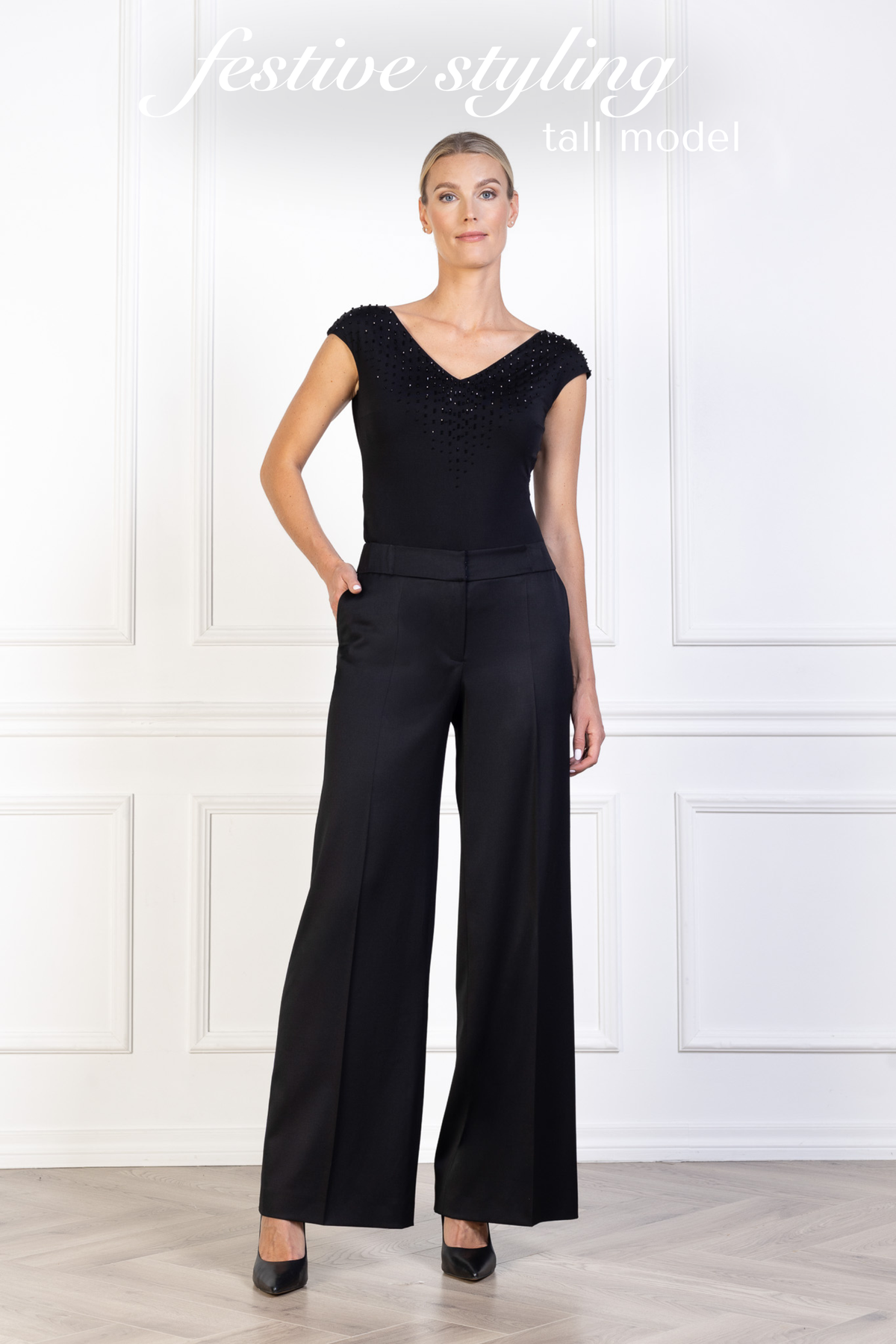 ALPINIA BLACK FINE WOOL WIDE-LEG SUIT PANTS