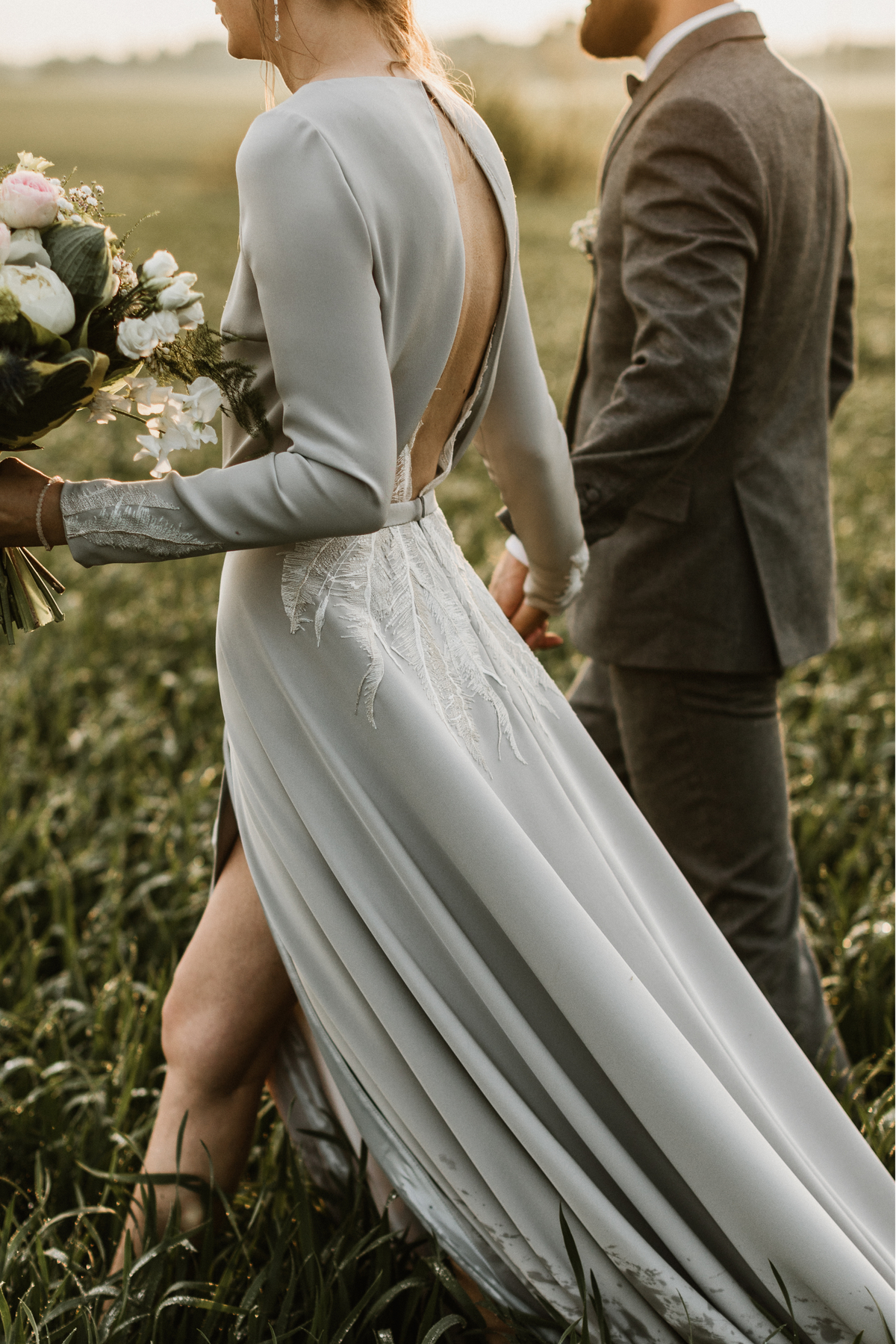 A fully custom-made reception gown, designed and created specifically for you. The starting price of 2000€ reflects a simple base design; the final price depends on the complexity of the design, fabric selection, and any additional handwork or detailing requested.