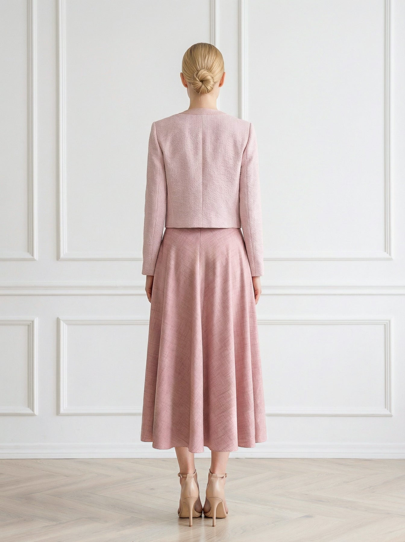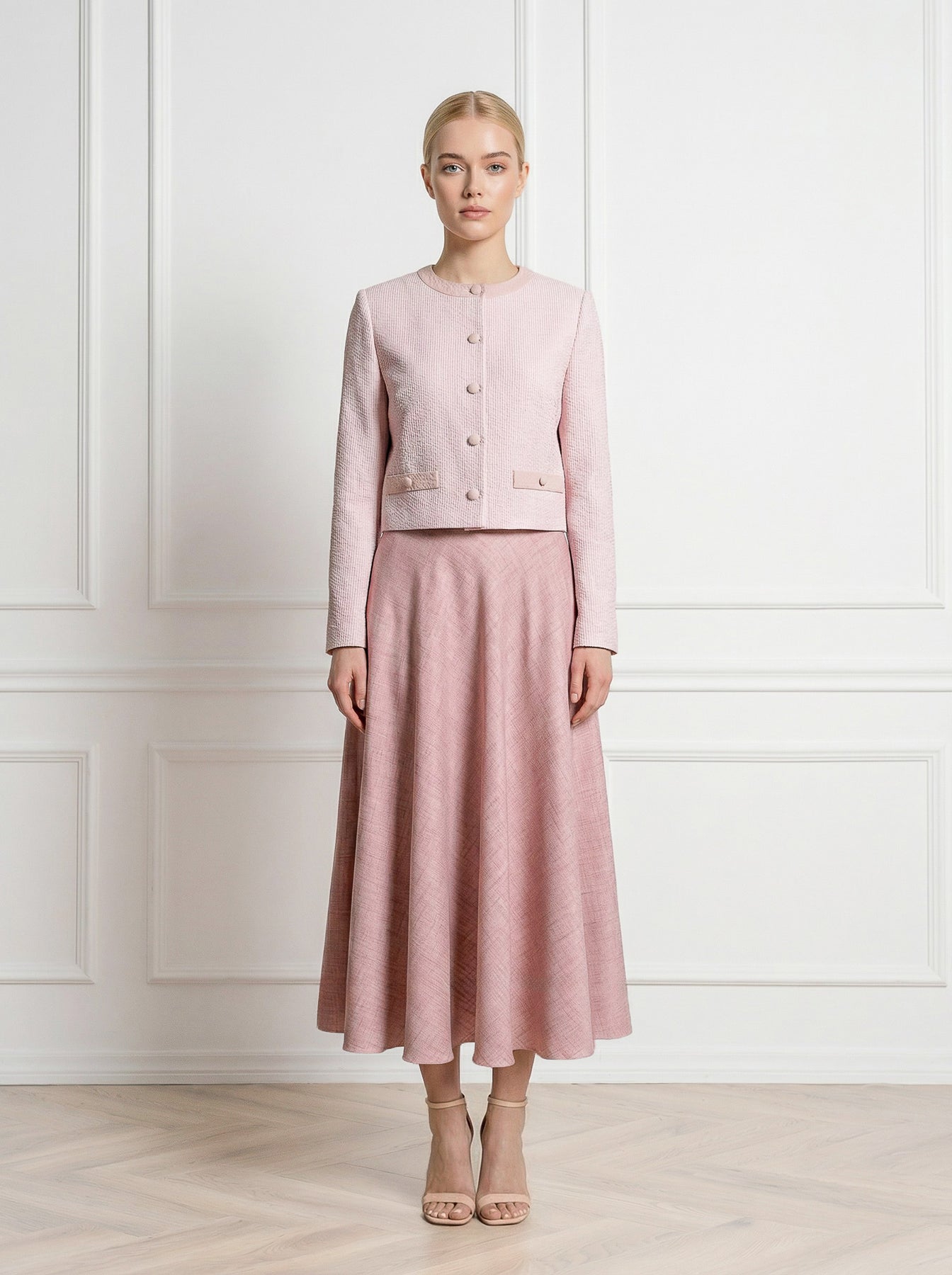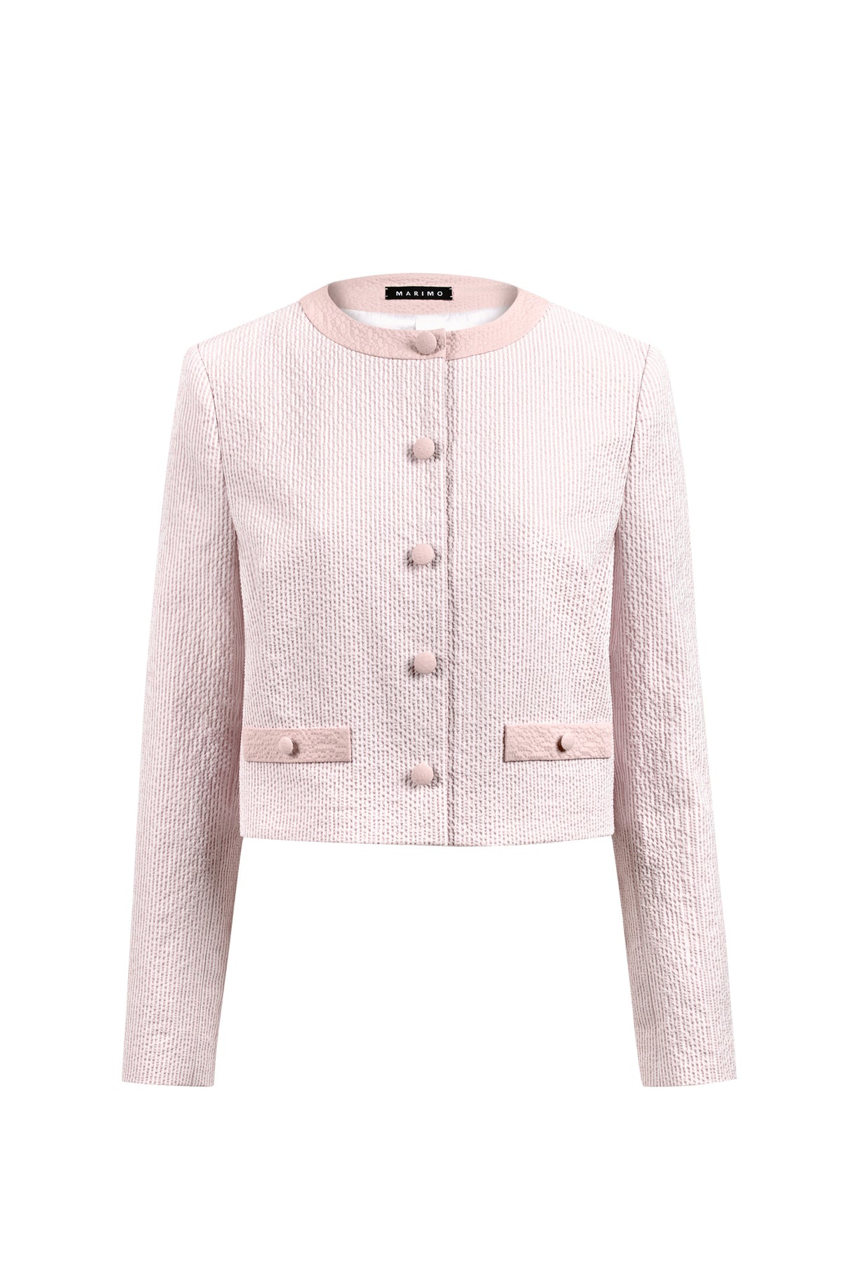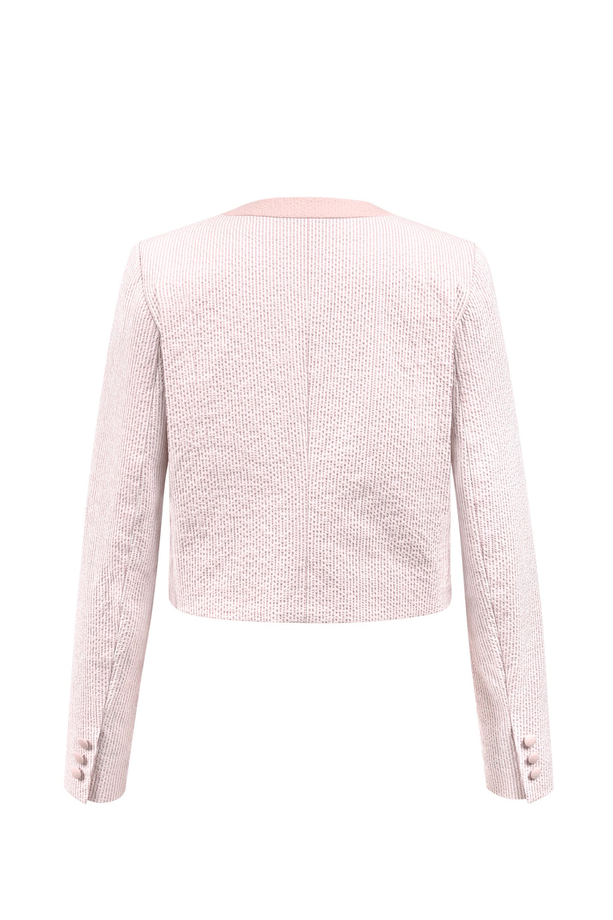 A polished cropped jacket that brings timeless elegance with a casual touch. Crafted from striped cotton seersucker fabric, it offers lightness and ease while maintaining its sculptural silhouette. The clean lines and long sleeves create a refined finish, fully lined with silk for luxurious comfort. With its cropped cut, it’s the perfect layer for everything high-waisted – especially midi skirts, enhancing the feminine figure. Add heels and the look will be pure understated glamour.