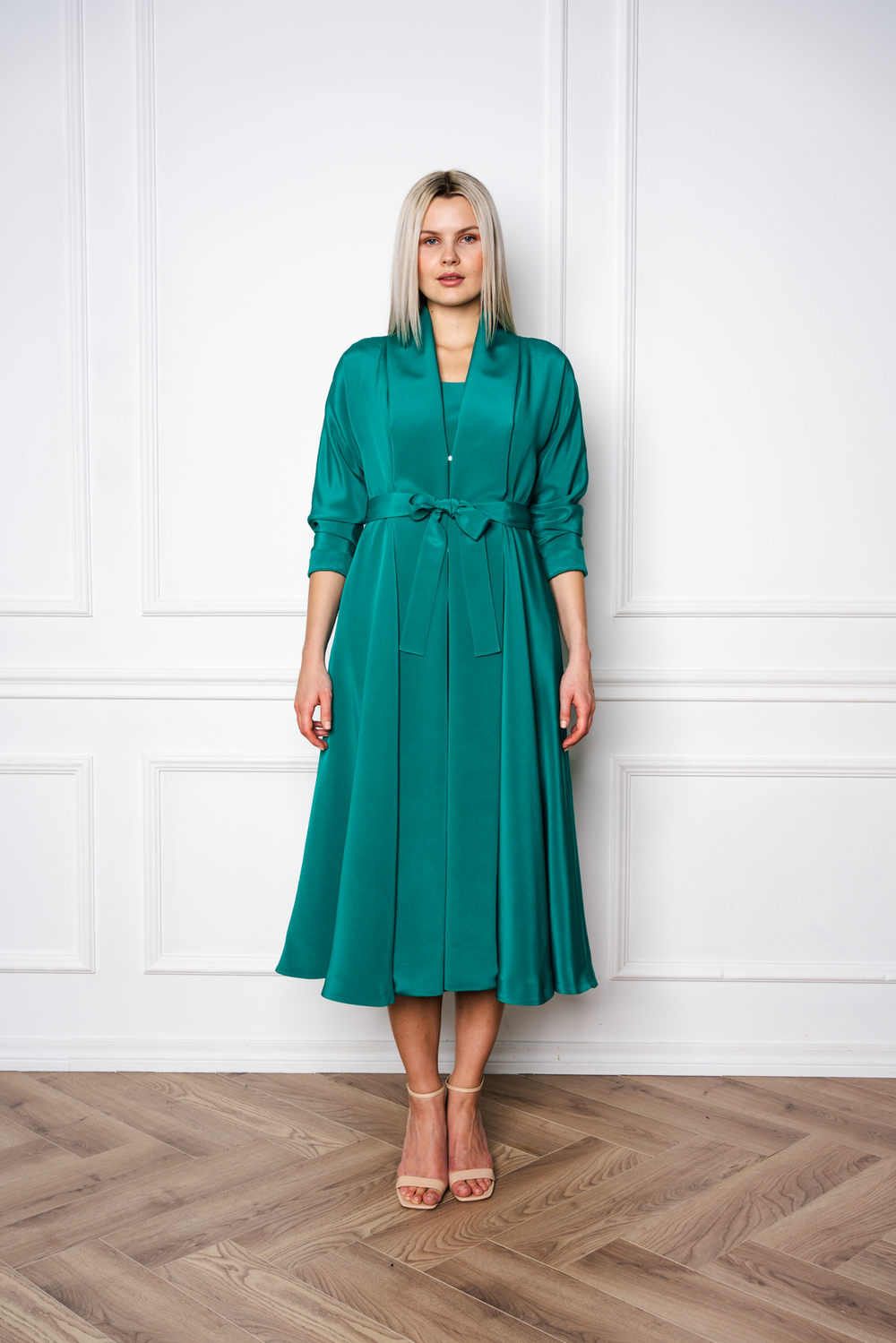 LINARIA TEAL SILK KIMONO CUT COAT DRESS