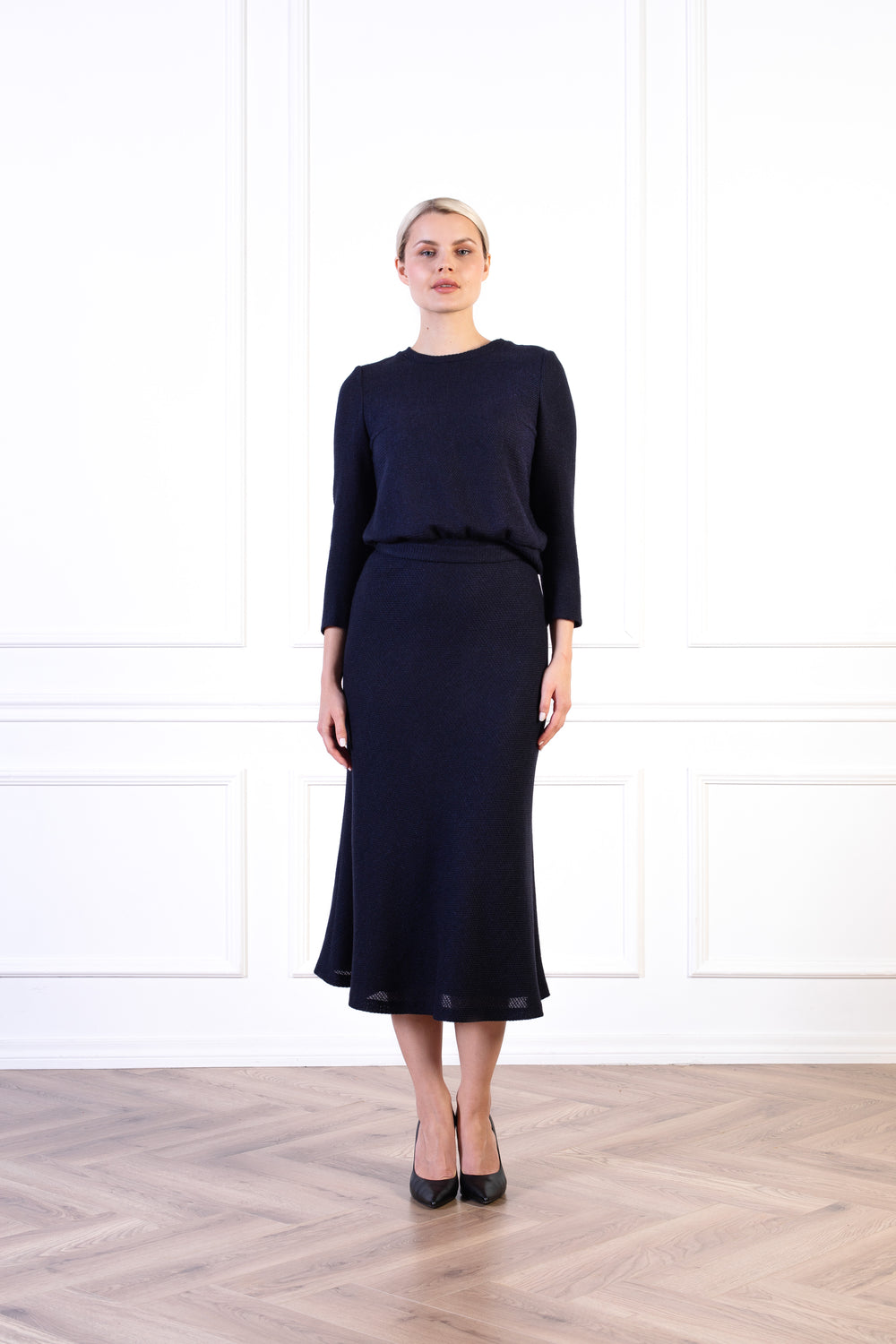 JASMINUM NAVY BLUE TEXTURED ALPACA-WOOL MIDI SKIRT
