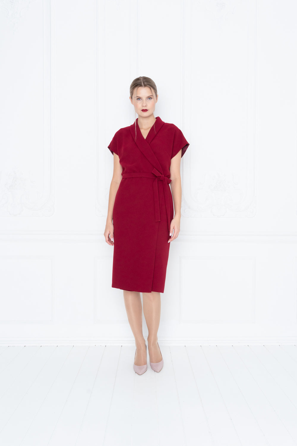 EUPHORBIA DEEP RED WRAP PENCIL DRESS