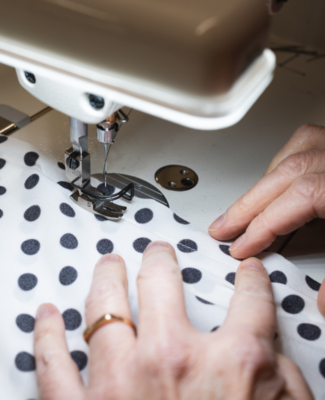 We take pride in our in-house production at our atelier in Tallinn, where our experienced tailors craft each piece with precision and care. This approach allows us to maintain the highest standards of quality and craftsmanship while ensuring that our zero-waste and ethical principles are upheld. By keeping production in-house, we ensure every garment aligns with our ethical values. Our knitwear line, produced in Italy, follows these same high standards, reflecting our commitment to responsible and slow fashion.
